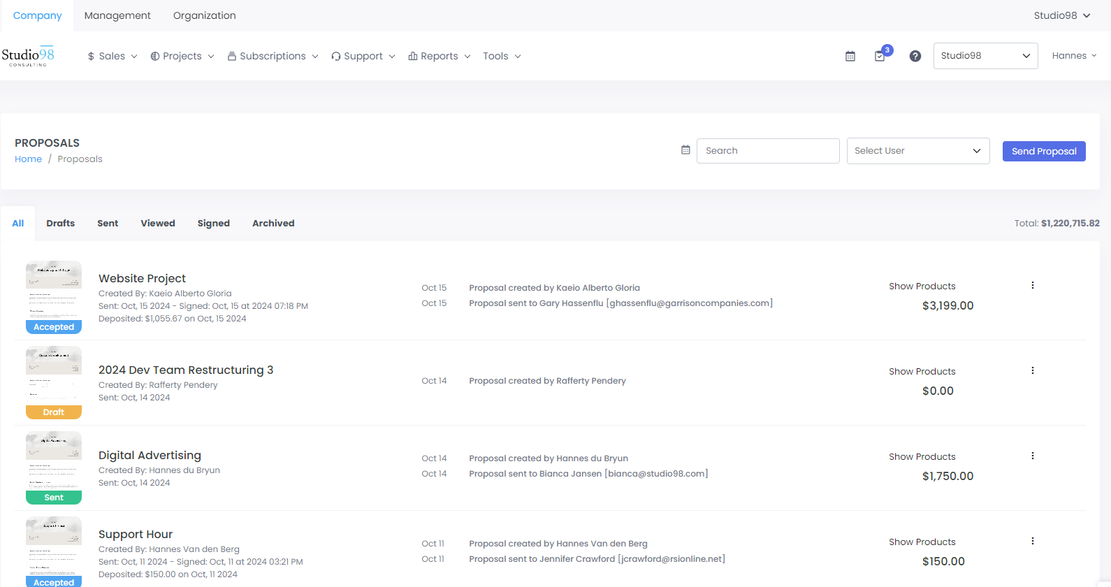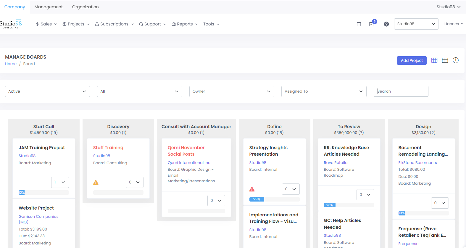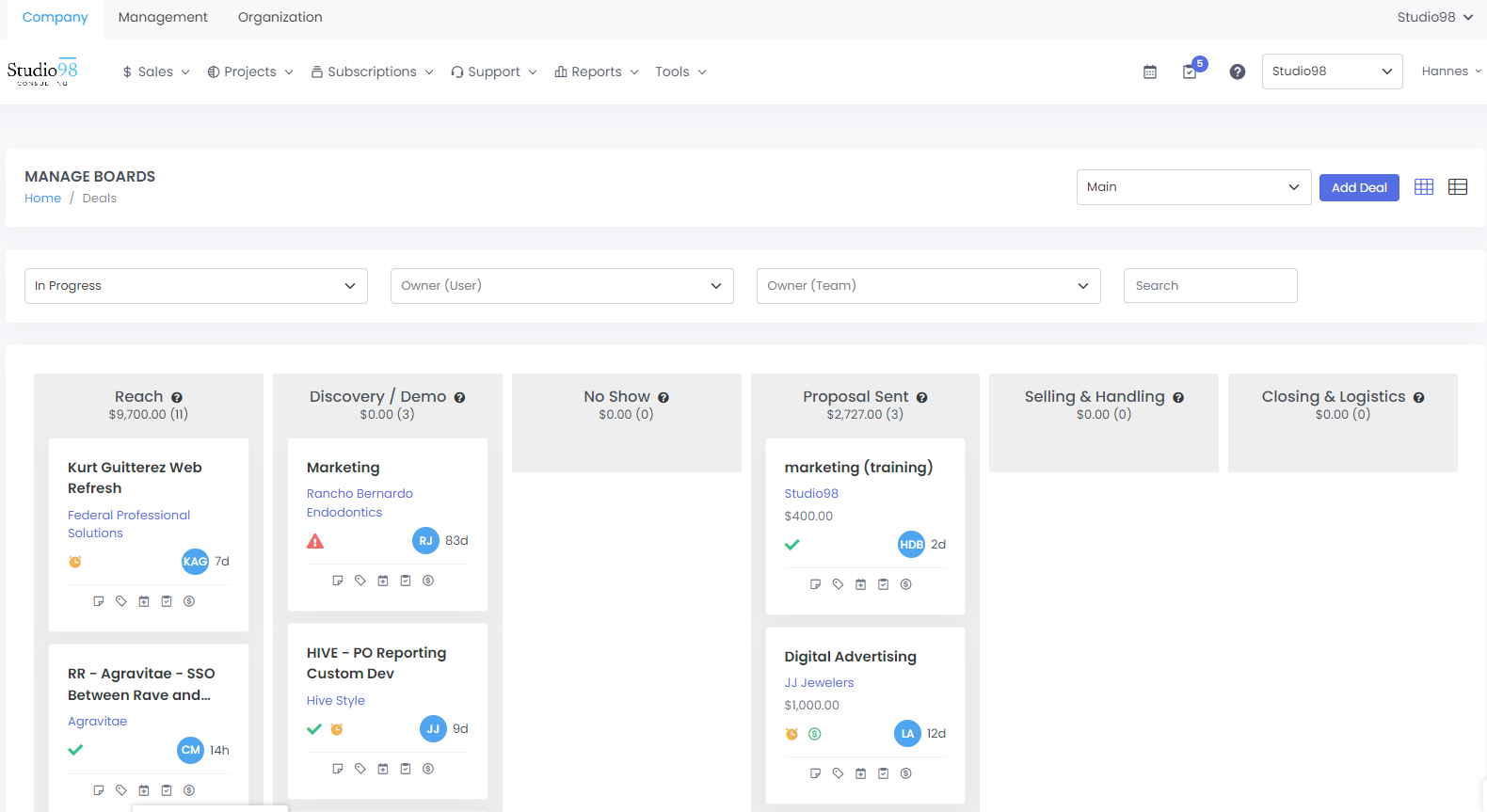 Every opportunity to sell something gets added to the deals board from initial interest through sending proposals, and even collecting payments, streamlining your entire sales process. GrandCentr.al saves you time and reduces stress, allowing you to focus on growing your business rather than managing a bunch of software tools.